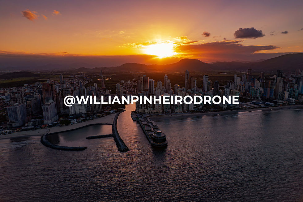 Foto aérea Meia praia, Pier. Golden hour 428